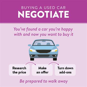 - Turn down add-ons. If you're buying a used car from a dealer and they try to sell you add-ons, just say no. You can likely find a cheaper source elsewhere.