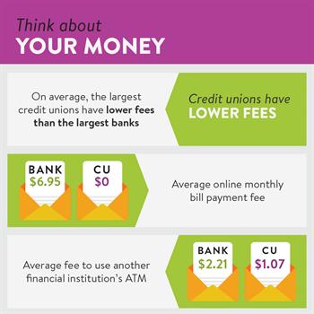 The main difference between banks and credit unions is in their structure. Banks are for profit, while credit unions are member-owned and -operated. This means that banks have numerous expenses that credit unions simply don’t have. Banks have to pay their shareholders, their private investors and even their board of directors (credit union boards are typically volunteers elected by credit union members)—and all this is in addition to regular operating costs. Banks are set up in a way that allows a select group of people to make money off of your banking activity.