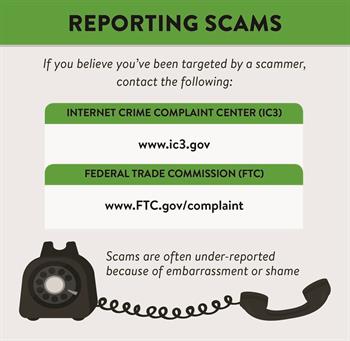 If you believe that you've been targeted by a scammer, contact the authorities to report the incident. Scams are often times under-reported.