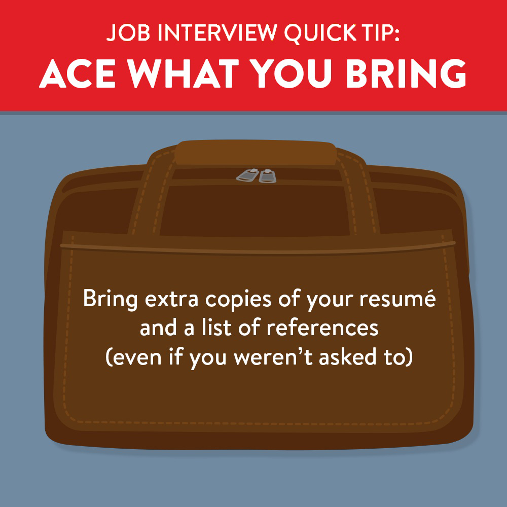 Ace What You Bring: Your resume, cover letter, and references should all be neat and up to date.