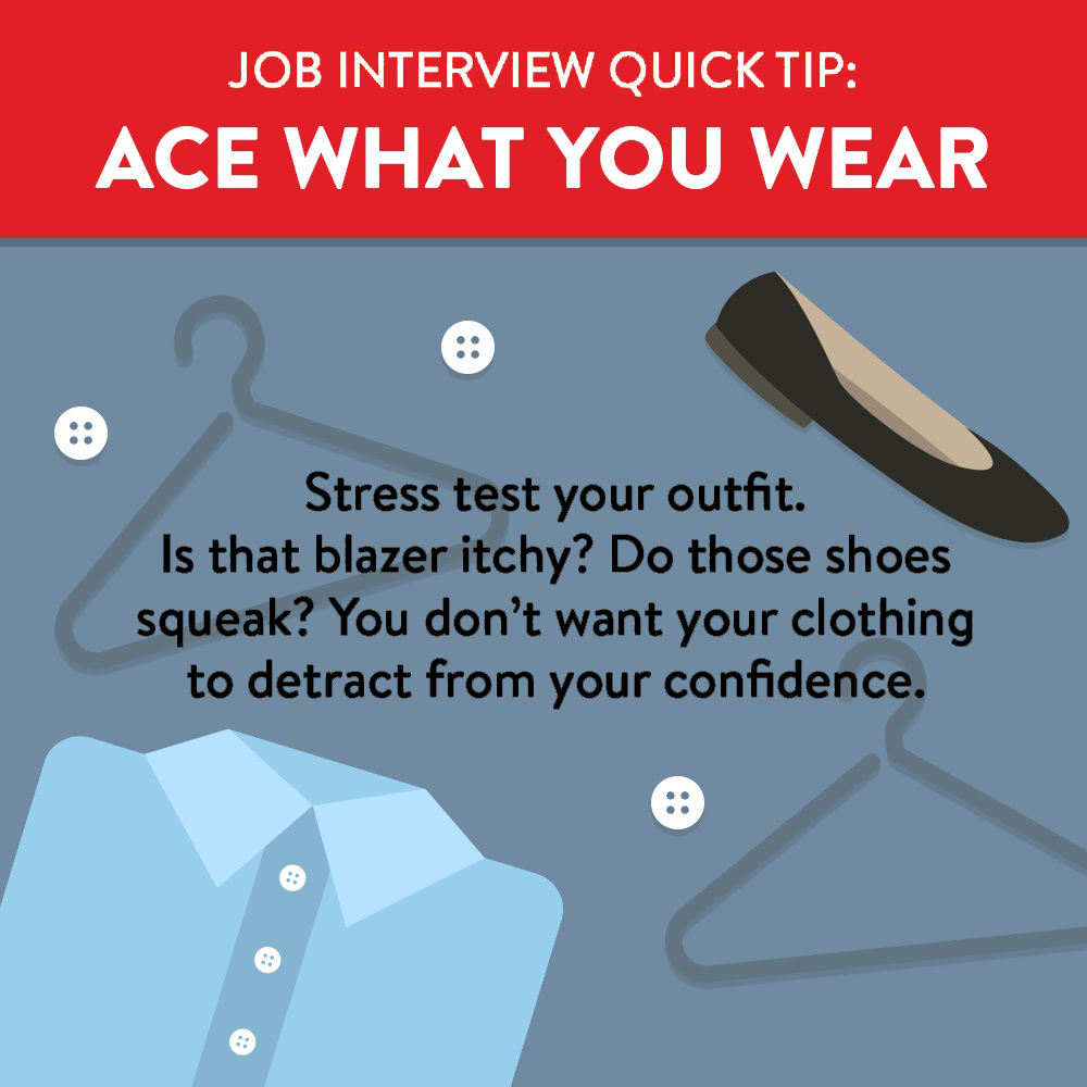 - Try on your interview outfit ahead of time to make sure you can move and sit comfortably in it.